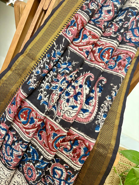 Rajani- Handwoven Mangalagiri Silk-Cotton Saree with Nizam Border & Kalamkari Hand Block Print (Copy)